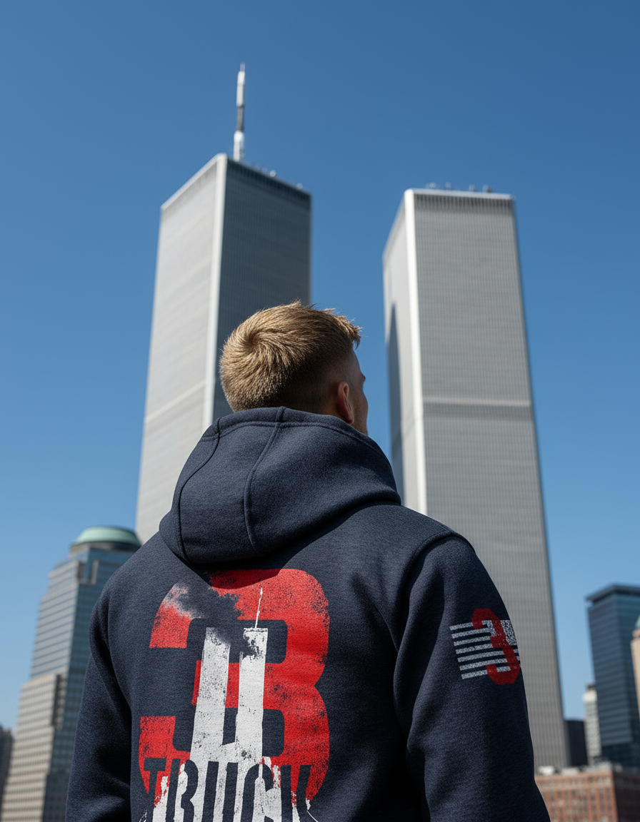 The DIA 3 Truck: Still Heading Up - Always Hoodie is our tribute to the men of Ladder 3 and their final stand of bravery. It carries the spirit of Captain Paddy Brown, a U.S. Marine Corps veteran and commanding officer of Ladder 3, whose final radio transmissions capture the heart of that day: