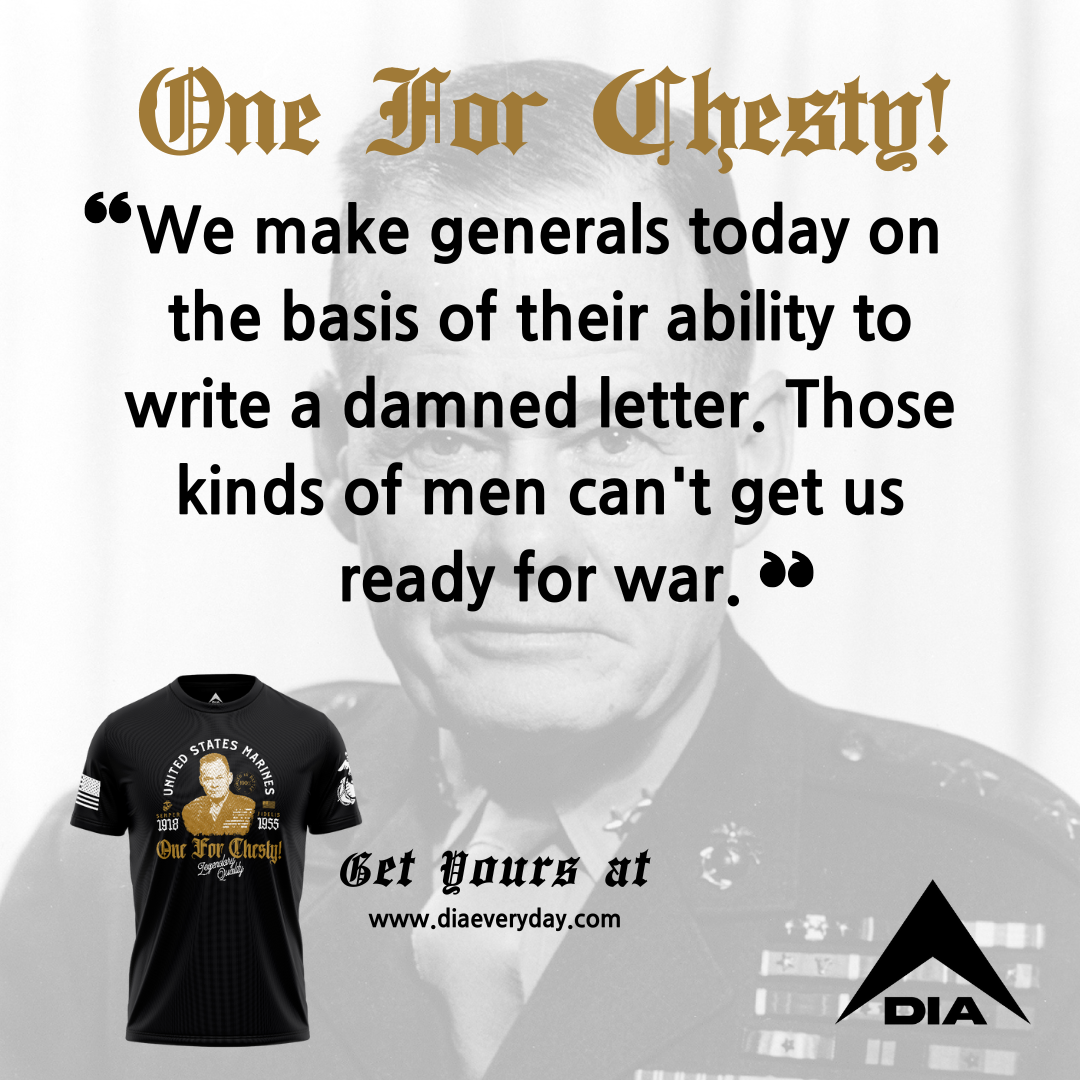 The DIA One For Chesty Military Legends T-Shirt honors this warrior for his legendary demeanor and performance on Earth. Give one for Chesty and grab this shirt. You know he’s watching, right?